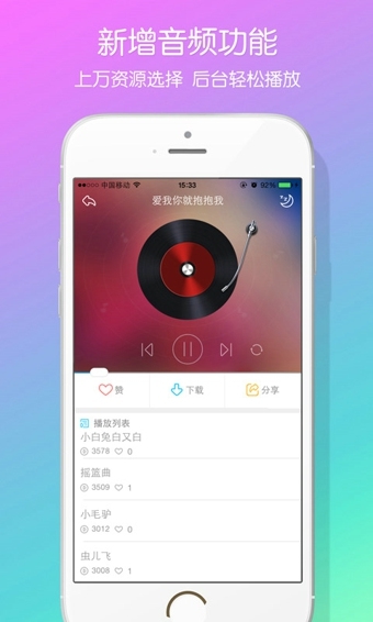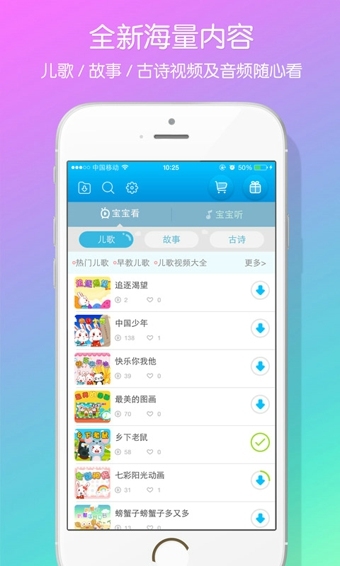 不仅仅是儿歌,还有动人的童话故事哦,并且随时有更新,根据用户需求会不断改进升级,对付小朋友这比购买玩具要省钱省事得多~