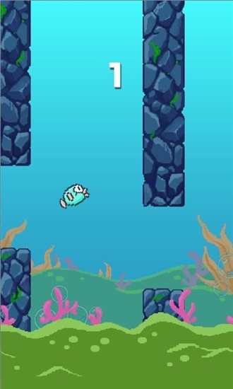 玩家们点击频幕控制小鱼的波动,穿梭的小鱼采取了像素画面让游戏更更加清晰,玩这款游戏的时候要绷紧神经控制好小鱼不让它撞到岩石,十分虐心的微操作。