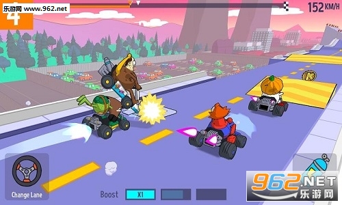 这款游戏唯一的目标就是胜利,不管你利用什么手段,使用炸弹、撞其他玩家,只要你是最后冲到终点的就是赢家。游戏中你可以挑战来自世界各地的玩家,赢得的比赛越多你就能解锁更多的卡丁车和司机。