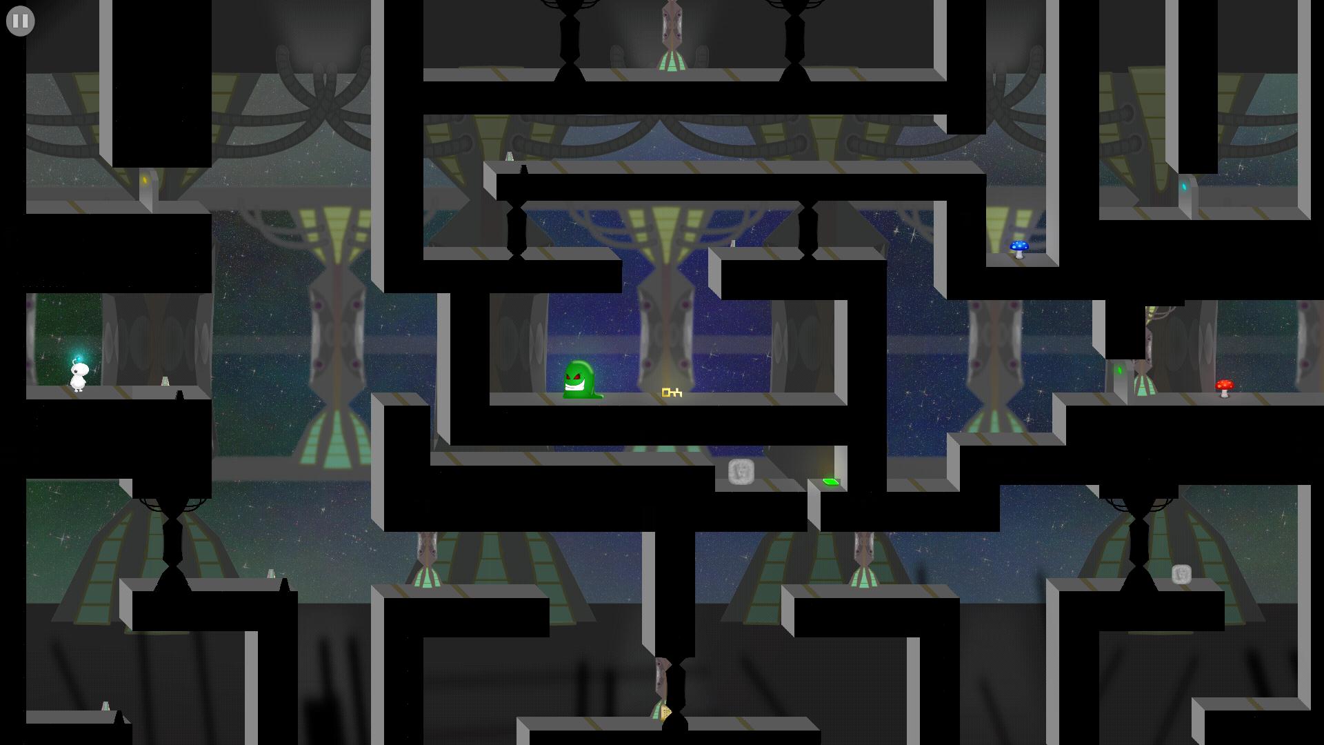 游戏画风简洁清新,在构造复杂的丰富地图中寻找自己的还在,独特的虫洞能力会帮助你穿越许多障碍,开动脑经合理的利用才能完成冒险