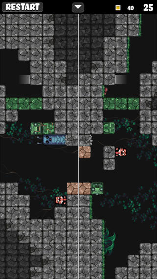 向上划推动石头、向左滑动跳跃、向右划动踩踏灰色石头或虫子帮助反世界的另一位主角.