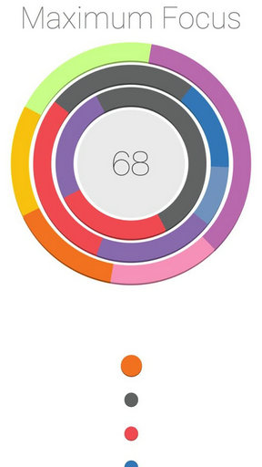 在这款简单快速的游戏中,不断消除旋转环的各段有色区域来层层闯关。若被撞区域与弹射球同色,则该区域可被消除。