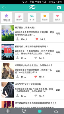她她为所有拉拉群体提供了一个展示自己,结识新朋友的平台,是纯粹、简约、真实的拉拉社交的回归.在这里你可以安全有效地认识同是lesbain的Ta,可以随时随地与你感兴趣的Ta保持沟通,并关注Ta,看到更多关于Ta的资料信息、分享的照片,以及对于某些问题的独特见解。
