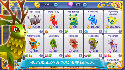 收集神奇的动物,例如精灵雪貂、喷火小马、纯黑斗犬,以及其他更多的动物!每个动物都拥有自己独特的外观和个性。没有哪两个是一样的!