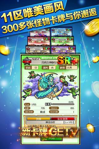 而游戏中另一主打则是超过300枚以上精心绘制的怪物卡片,可爱的、威风的、充满了个性的怪物们,你一定会遇到喜欢的!怪物们拥有着抢眼的造型,还可以在强化养成中不断进化变身,愈高级便愈帅气,令人按捺不住收集的欲望。此外,《金币斗恶龙》的设计师们还加入了不少恶趣味满满的彩蛋,例如胖坨坨的大地公主进化之后会变成婀娜妖娆的大地女神,一些毫不起眼的小怪物往往更给人带来惊喜。