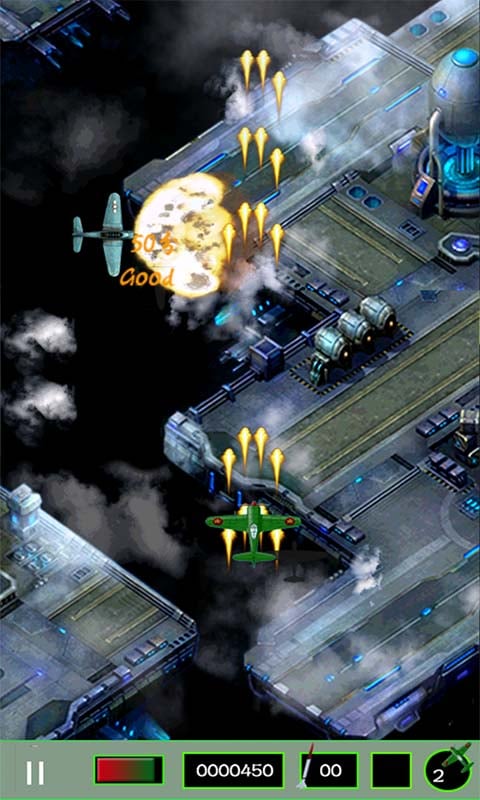 比较传统的空战游戏,玩家控制战机在躲避敌人子弹的同时攻击敌人,你须要打败所有的敌人后才能进入下一关卡,游戏中玩家击落敌机有几率掉落强大的武器,更多关卡等着你来挑战。。。
