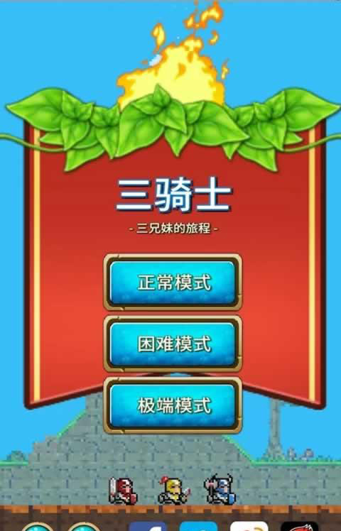 三骑士是一款怀旧像素画风竖版动作冒险手游,游戏有着复古地下城冒险的气息,玩家将率领3位骑士展开冒险之旅,游戏以竖版塔形地图,玩家将一层一层进行消灭魔物,最终挑战大BOSS,4个不同的场景等你来体验。