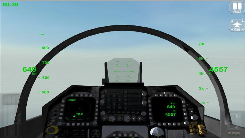 点击界面右下推杆,可以控制飞机油门,控制飞行速度。同时游戏提供舱内舱外,两证模式供玩家选择。