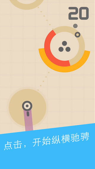 《再一次冲刺》(One More Dash)游戏中玩家将操控一直线绕过障碍物,不过游戏独特的地方在于,只能按照圆弧形状改变方向,所以一旦发现前方不远处有障碍物,玩家就需要及时用手指滑动屏幕,并注意所划出弧度的大小,给曲线的方向转移预留空间。