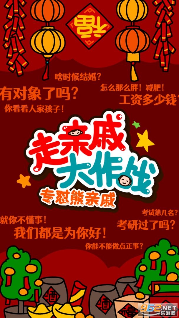 《走亲戚大作战》是一款轻松愉快的沙雕休闲小游戏,通过简单的点击选项,模拟逢年过与亲戚们的对话互动,把熊亲戚们强加给你的死亡聊天大声勇敢的“怼”回去,从亲戚们层层叠叠的连招里收获最完美的过节体验。