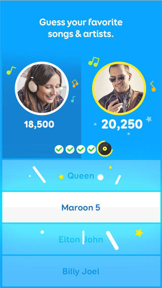 《音乐竞猜2(SongPop 2)》是一款节奏十足的音乐类答题手机游戏,游戏中将为大家汇集了不同类型的歌曲,让你能够在音乐的领域里畅通无阻哦!快来和你的朋友一起挑战10万首歌曲,听歌猜歌,获得最高分。一代是火得不行,二代曲库更大,主要还是得对外文歌熟悉。