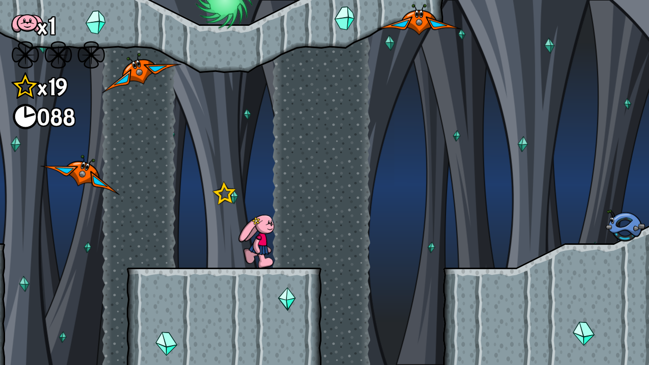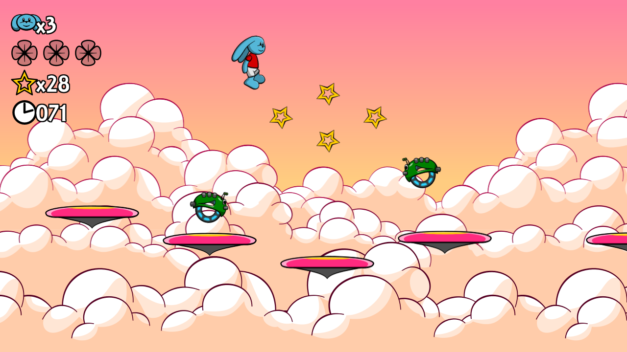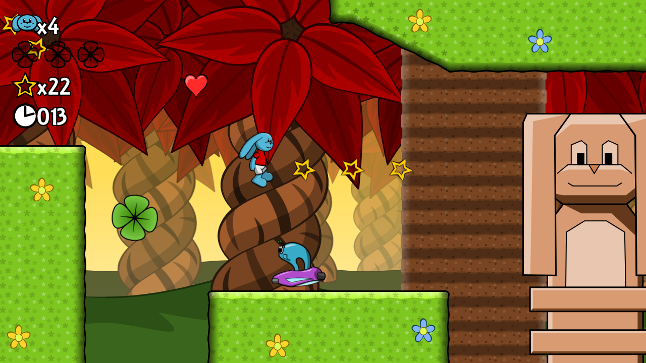 玩家在游戏中要操控两只兔子,在各个平台上奔跑跳跃收集沿路的星星。