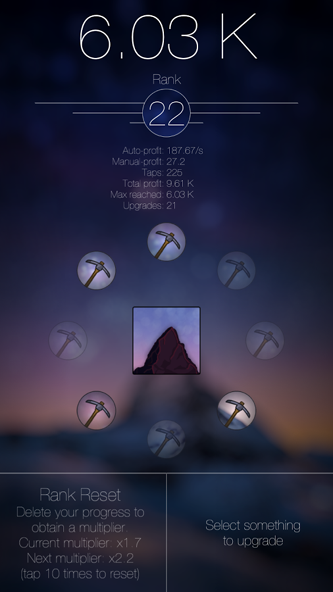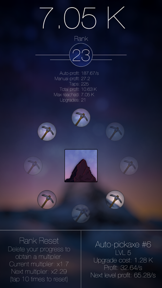 这一次的旅程,是出发前往一个人迹罕至的山区进行对珍惜矿物的挖掘,找准位置,发动机器,设置好时间、次数等各项参数,玩家就可以在欣赏美丽夜空的时光中等待收获了。累计财富还可以升级机器,提高采矿效率。