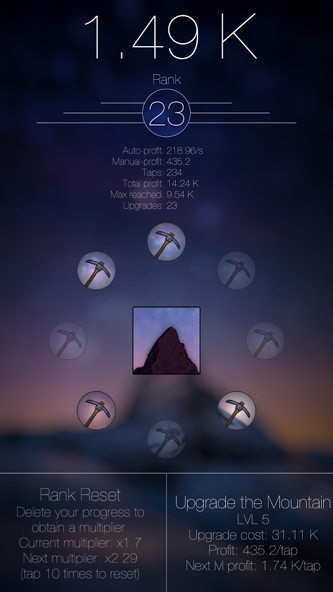 《闲山矿工》是一款懒人必备的挂机挖矿游戏,喜欢寻宝又懒于动手的你可以进来看看哟!在山区里开始挖掘,使用自动镐齿轮进行,挖到宝藏记得强化升级你的装备哦。