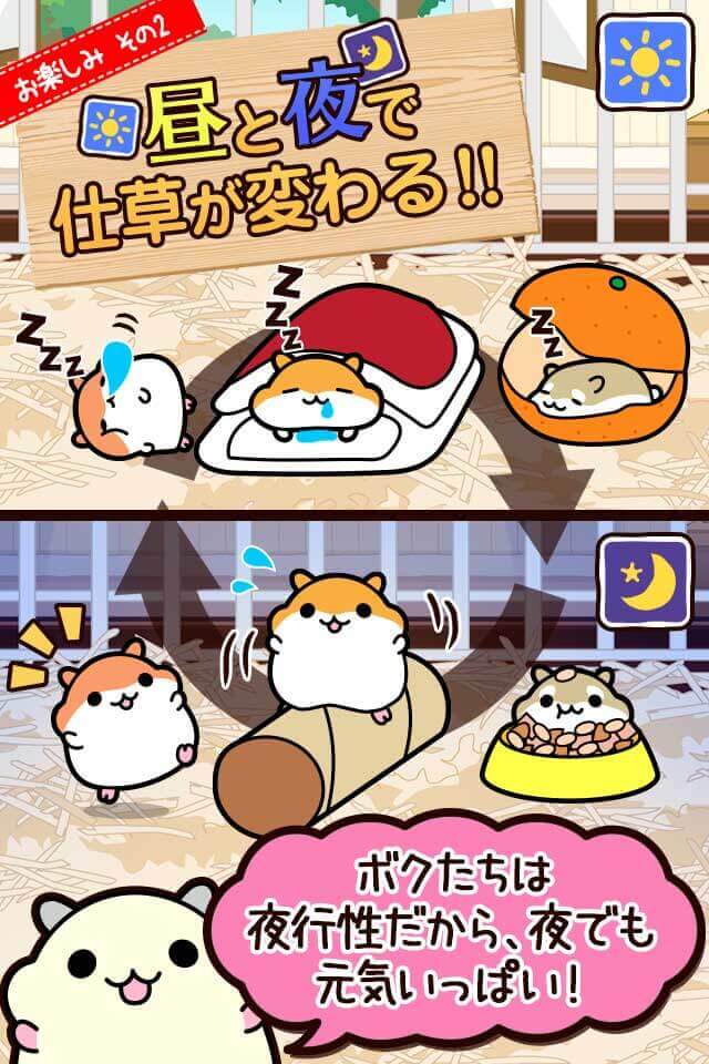 《仓鼠收藏(ハムスターコレクション)》是一款风格极其萌萌哒的治愈系养成类手游,游戏中的角色仓鼠萌起来真的会让你烦恼全部消失不见,本作玩法与《收集猫猫》类似,把食物与玩具放置在笼子内,等待仓鼠出来玩耍即可。特别之处在于昼夜交替会看到仓鼠们不同的习性。