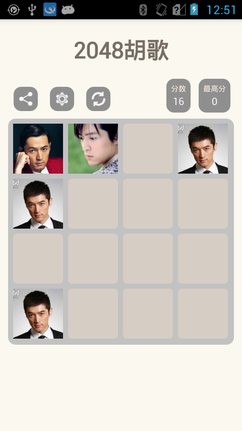 2048胡歌属于经典的益智休闲类手机游戏,也是采用了传统的2048的玩法,该作的色彩不是使用数字或者朝代,而是使用了著名的影星胡歌的头像,喜欢胡歌的玩家可以尝试一下。