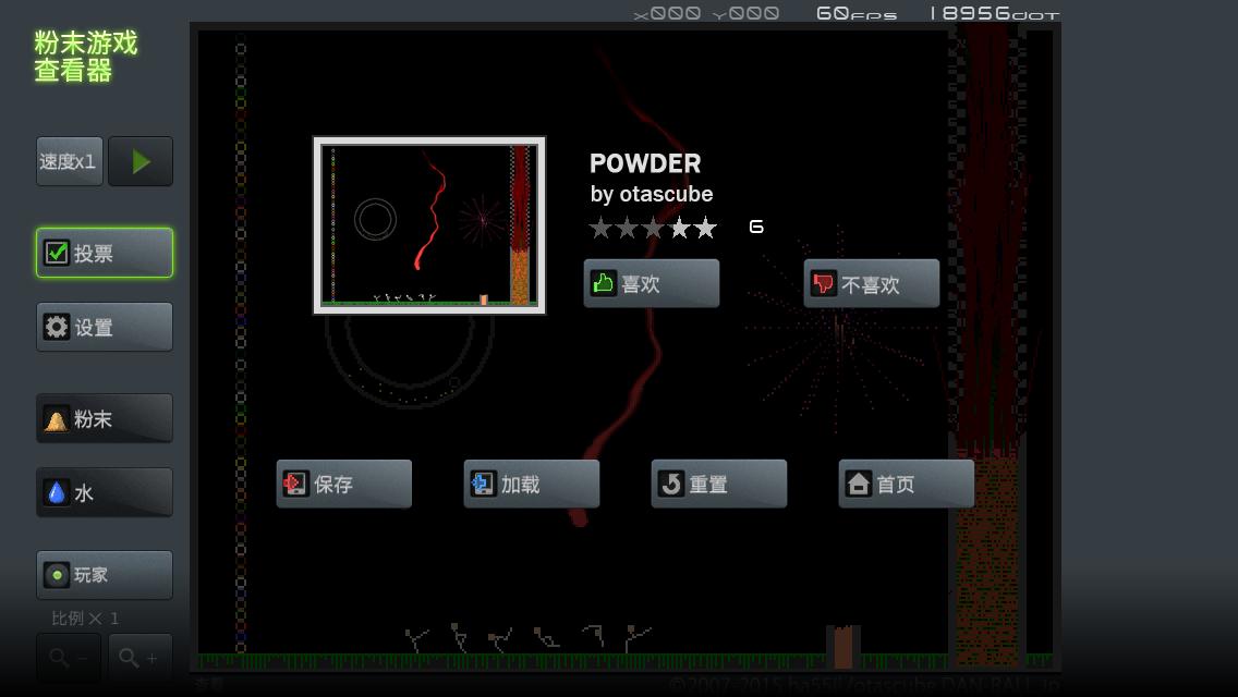 粉末游戏查看器(Powder Game Viewer)是DAN-BALL开发的一款休闲益智类游戏。旋风吹起树叶时,看着风的流动非常有趣。通过粉末(点)再现这种现象的物理模拟游戏!