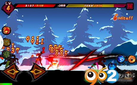 打击感和技能特效是本作最大的亮点。虽然本作的画风简约,但是在打击效果上还是颇让人眼前一亮的,打击感也不赖。不过由于角色只能左右移动这就限制了操作范围,进而影响了游戏乐趣。虽说游戏有着非常好的打击感,但是在格斗玩法上不足明显,让人颇感遗憾。本作简单的系统和简单的操作,明显的让人感觉游戏的乐趣集中在格斗上,但是没有了纵向的移动,的确丧失了不少的趣味。