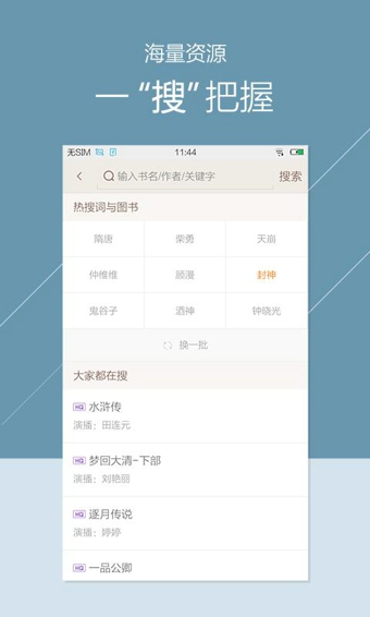 4、方便的书架功能,不论是在线播放还是本地播放,都能在书架中找到,并且能记住准确位置,下次直接连续播放;