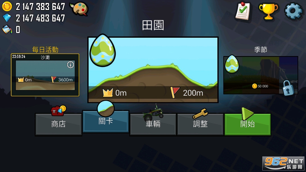 趣味的越野闯关游戏,玩家可以解锁摩托车、巴士、卡车、坦克等各种各样的车辆去冒险,有着沙漠、雪地、森林等众多的场景可以挑战,有着已修改,轻松获得大量的货币,解锁各种车辆。