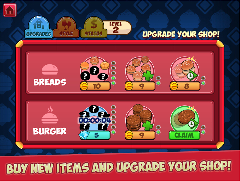 粉刷墙壁,更换地板,购买新托盘,灯光等等!随着游戏越来越后面,顾客需求会越来越复杂,你可以及时为顾客提供最好的服务吗。