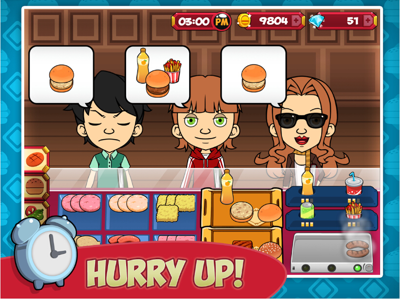 《我的三明治店 My Burger Shop》是一款模拟经营类游戏。在游戏中你需要经营一家三明治店,不同的客人有不同需求,而你则是要挑出这些食物,放在盘子里拖拽给顾客。每售出一份食物就可以赚取游戏币,然后购买新的材料、饮料甚至新的物品来装修您的三明治店,并让它变得更好!粉刷墙壁,更换地板,购买新托盘,灯光等等!随着游戏越来越后面,顾客需求会越来越复杂,你可以及时为顾客提供最好的服务吗?