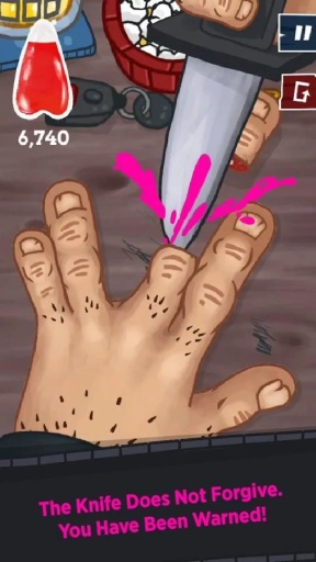 《手指FingAAH》是一款非常重口味的切手指类手机游戏,游戏的玩法看上去会有点变态的感觉,你能够看到刀子从手上切下去之后飙血的场面!