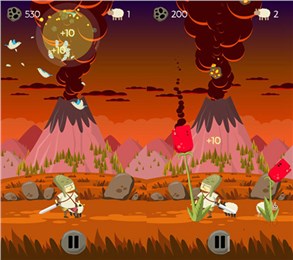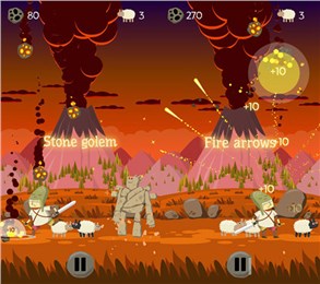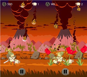 牧羊人甘利的生活一直都平静而悠闲,直至某天放牧时遭遇了火山爆发!为了拯救重要的绵羊们,玩家要帮助甘利,点击屏幕来到相应区域,并拔出宝剑对抗不断砸下来的火山灰烬。