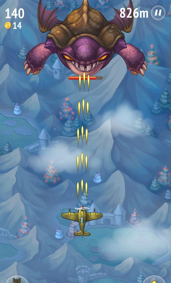 快节奏竖卷轴飞行射击游戏,画面卡通、明亮,看起来很舒服;
