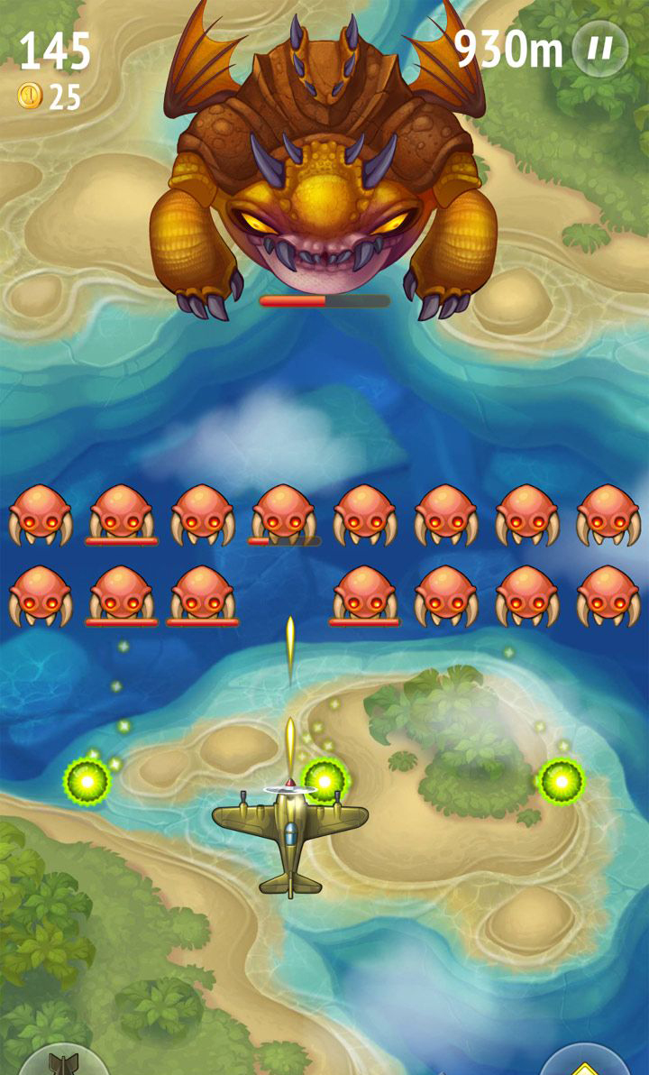 天空战队是一款有趣的飞行射击手游,玩家将驾驶着螺旋桨飞机在天空中与外星怪物展开战斗,多种武器全面开火,还有保险大炸弹!非常有趣的打飞机手游等你来玩。