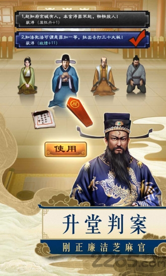 在游戏中你将扮演一代清官包大人来治理好自己的开封府,同时你还要招募一些像展昭武功极高的人留在自己的身边,邂逅更多的美女佳偶,升堂判案当一名刚正不阿的廉洁芝麻官,安安心心的为老百姓做事,让自己体验到当官的无穷乐趣!