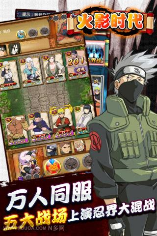 《火影时代》是一款内嵌了主角语音的卡牌战略类手机游戏,游戏目前集结了目前漫画中的全部角色,诸如木叶的卡卡西、风影的我爱罗、八尾的奇拉比、晓的鼬等等, 所有阵营的忍者都将逐一登场。游戏剧情将从木叶村出发,直到第四次忍界大战,一路带领玩家重温忍者世界的热血和感动。