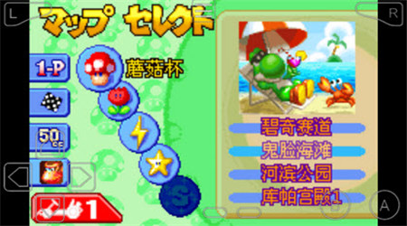 《马里奥赛车A》系列不同于其他赛车类游戏,引入的道具系统使得平静的道路上不得不提防他人的阴招,同时自己也找到机会,给前面的一颗龟壳。所以,对战时,除了开的要快外,合理地运用道具才能让自己取得不败的地位。