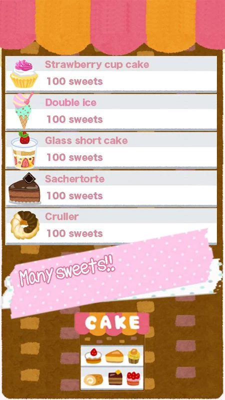 你拥有一家自己的甜品店啦!你可以去做各种各样的甜品!纸杯蛋糕、草莓蛋糕、奥地利萨赫蛋糕、法国千层蛋糕、蛋糕卷和布丁、冰淇淋! 和你的朋友们一起来玩吧!游戏内有超过30种可爱甜品!