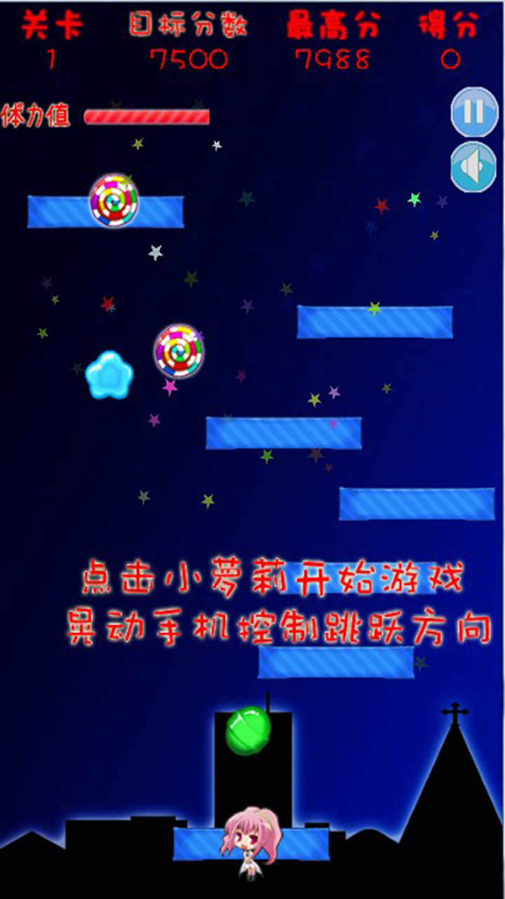 糖果跳跃是一款休闲的跳跃游戏,玩家们在游戏中控制一个萌萌的女孩子进行跳跃在天梯上手机美味的糖果,丰富的关卡设计,完成关卡目标分数,和小编一起收集糖果进行闯关吧!