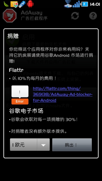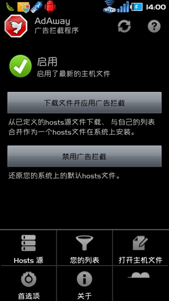 AdAway是一款基于hosts文件的Android屏蔽软件,同时hosts文件列表由开源组织进行维护,时刻保持最新信息。如果你在运行软件的时候总是发现有广告或者弹窗之类的广告信息出现,不妨用广告拦截器 AdAway试试,兼容性做得不叫好,而且功能确实不错。