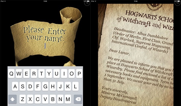 游戏既然出自官方(即华纳影业)之手,方方面面都体现了电影的精髓,如输入你的名字后(名字可以任意起,笔者就用了最喜欢的“哈利·波特”系列人物卢娜的名字),你就会收到一封出自邓布利多校长之手的入学通知书,和哈利当年收到的通知书同款哦!