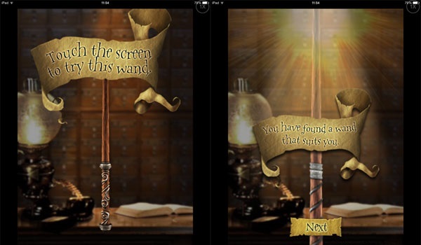 收到通知书后,你得去购买入学必需品,最重要的就是一支适合你的魔杖——游戏给向你提供数款魔杖,点击试用,直到找到适合你的那根为止。