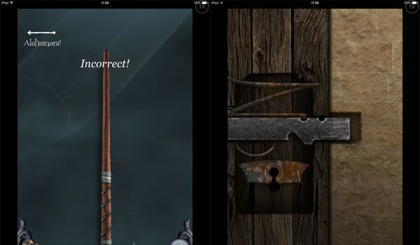 分配了学院之后,你就要努力学习魔法、练习咒语,为你的学院加分了。这里学习咒语的方法很简单,按游戏显示的图案,在屏幕上一笔画出来就好了。游戏里会提供一些比较基础的咒语,如“阿拉霍洞开(开门咒)”、“统统石化(全身锁咒)”等,成功后会出现一段和电影情节一样的咒语特效,让整个咒语显得更“真实”。