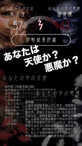 天使与恶魔的诊断是一款趣味的诊断性游戏,看你到底是天使的心还是恶魔的内在呢?通过一系列的关卡,对你进行试炼,搭配精彩的剧情故事,对你进行真实的解析。