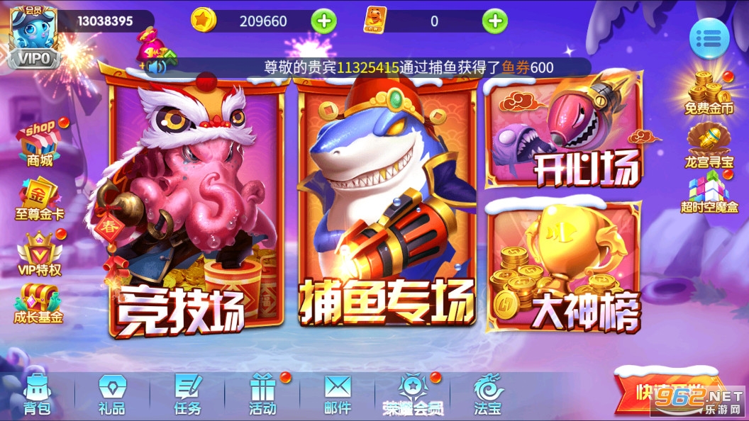 完美还原街机捕鱼玩法,场景多样,鱼种丰富,千倍炮台,更多BOSS,一炮爆机爽翻天!