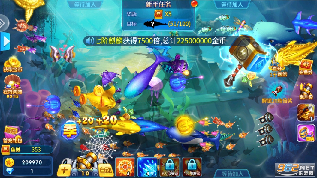 【四人同玩】捕鱼达人,邀你体验,随到随玩无需等待,真实联网,万人在线,4P同屏战boss!