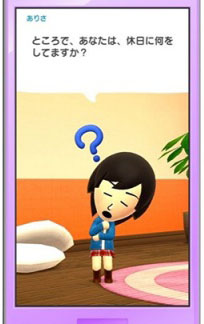 今天早上举办的任天堂经营战略说明会上,新任任天堂社长君岛达己公布首款手机游戏情报。该作名为《Miitomo》,也就是 Mii 和“tomo”的合字,Mii 是大家熟悉的任天堂平台玩家自建社交形象,而 tomo 则是日语“朋友”的发音。所以这是个什么样的游戏,大家应该能猜到了。