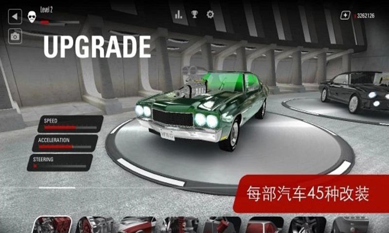 在车库里,允许对每种汽车进行至少45次改装。通过改变技术性能,请尝试全新的驾驶风格吧:会更充满野性。请根据自己的喜好设置外形、添加个性化装置。并等待游戏的下次更新!