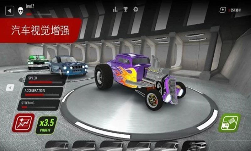 肌肉狂奔安卓版是一款令人震撼的,感染力极强的赛车竞速类游戏,肌肉狂奔安卓版游戏百分之百真实的汽车驾驶感觉,无限引人入胜的汽车赛道,在你面前的是举世无双的赛道和令人难以忘怀的感觉与惊险,驾驶着自己的宠儿(赛车)去参加比赛吧。为了装配一座完美的装满车的车库、为了给汽车加油、直到它们变成真正的野兽,去努力赚钱吧,本作将为你奉上一份美好的肾上腺素大餐,将让你产生速度的满足感,争取成为冠军吧。