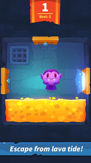 玩法看似简单,事实上却非常有挑战性,不仅后面有着熔岩逐渐逼进,一碰即死,而且每个房间中都可能存在着其他不一样的机关,比如电流网、锯齿轮等等。当遇到这些机关,玩家就必须捉住合适的时机让小怪物冲过去,否则就要呜呼哀哉了。