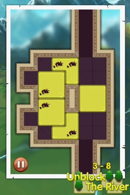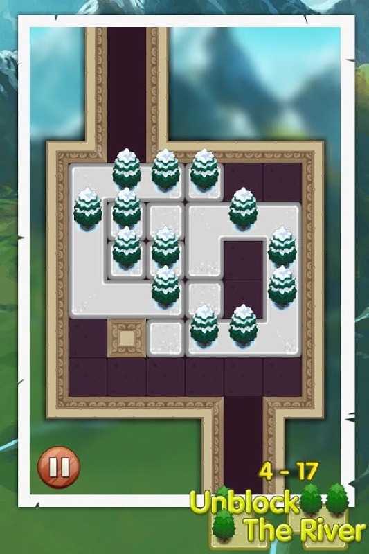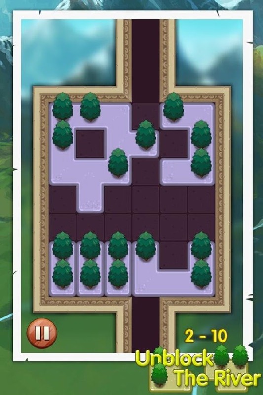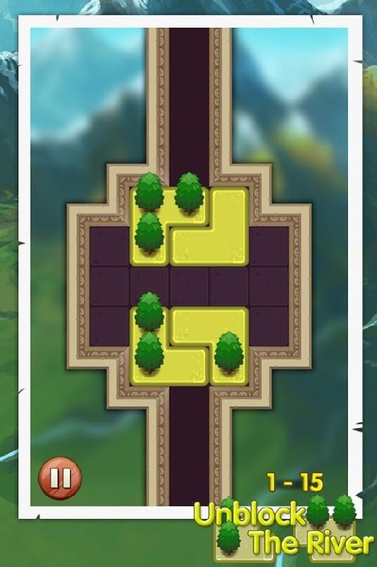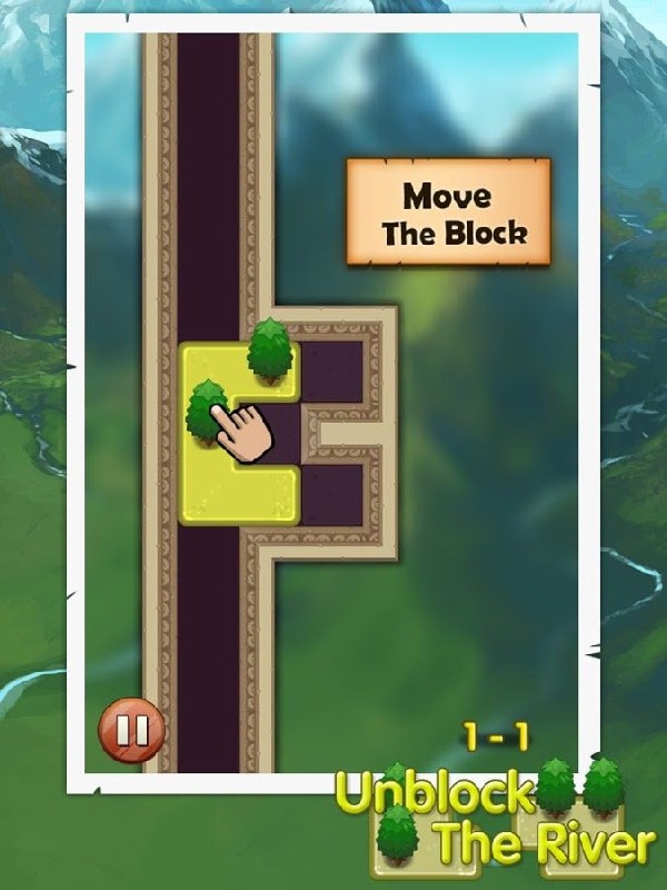 游戏的主体背景以毛玻璃的形式打造,模糊不清的背景下我们依稀可以看出那青山绿水的美丽风景,所谓的河流其实也不像真正的河流,象征性的道路中摆放着俄罗斯方块似的方块,上面种植着一颗颗绿幽幽的小树,只有挪开它们,我们才能见到不停流淌的小河。