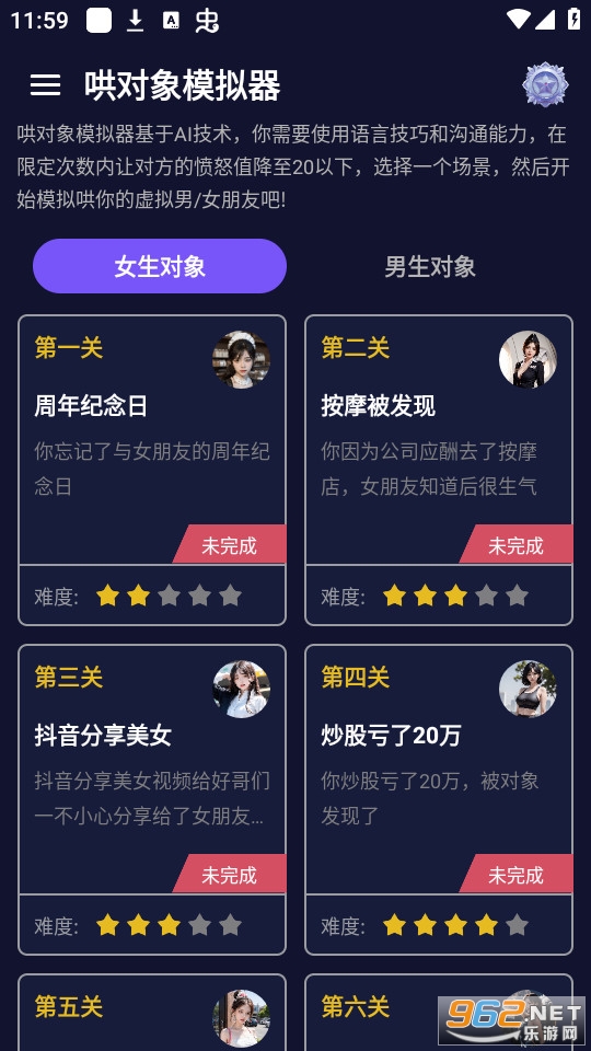 一款关卡丰富的爱情挑战游戏,它为你设置了不同的场景,看看你如何哄你的伴侣。