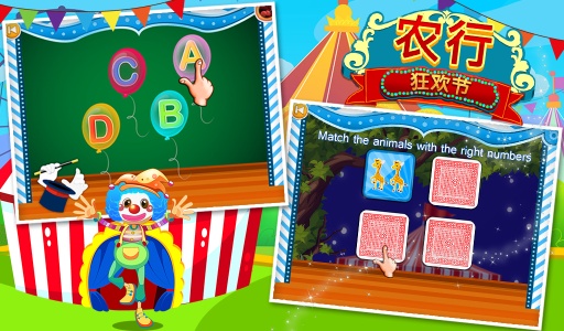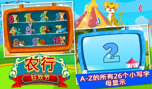 ABC嘉年华作为一款手机游戏游戏成功的将26个字母和简单的算数题相结合,让小孩在游戏中的到学习让他们得到更深刻的记忆。同时游戏以嘉年华作为游戏背景,丰富的有了设施和小丑加盟,更能激发小孩学习的潜力!