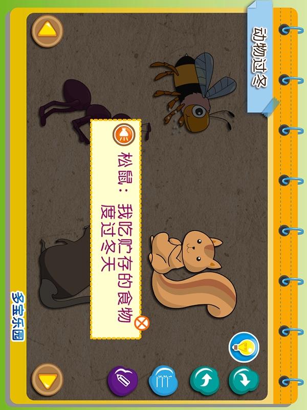 动物过冬属于动物科普类手机游戏,专门针对儿童早教认知大自然和动物的休闲游戏,该作讲述了各种小动物的冬眠习性以及生活规律和常识,帮助儿童和小朋友早期认知教育。